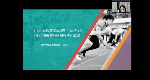 近日,东阳中天高中举行晚间“家校沙龙”,邀请专业律师解读《教育惩戒规则》和《伤害事故处理办法》,全校家长和教职工共2892人通过线上平台进行收听和参与互动。