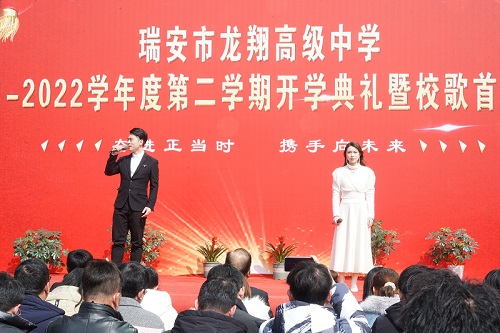 2月15日上午,瑞安市龙翔高级中学2021学年第二学期开学典礼暨校歌首唱仪式在校内文化广场举行,学校领导及全体师生参加了典礼,典礼由学校党支部副书记金春玉主持。