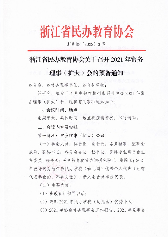 浙江省民办教育协会关于召开2021年常务理事(扩大)会的预备通知(图)