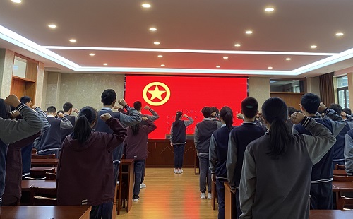 2019级团支部书记胡馨月主持本次活动。活动第一篇章:青春号角,誓言铮铮。学校团委书记吕月玲宣读了2022年上半年新团员名单,由老团员为新团员佩戴团徽,并在领誓人邹林鑫的带领下进行入团宣誓仪式,老团员们重温入团誓词。“我志愿加入中国共青团……”嘹亮的誓言响起,宣布着新鲜血液的注入进一步壮大了团组织。接着,新团员代表邹林鑫发言。邹林鑫从自己稳扎稳打的学习之路出发,阐述了对共青团的向往,就如何严格要求自己,做好一名合格的共青团员作出了表率。