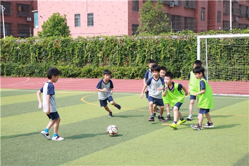 趣味球类课程:学生在与“球”共进过程中挥洒汗水、锻炼体能,提升合作。