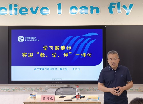 小幼科科长吴兴元老师和数学教研员徐丹红老师围绕“新课程标准”和“教学评一体化”为主题给老师们做了专题讲座。徐丹红老师以命题为切入点,做了主题为“教学评一体化,提高教学质量”讲座,结合“核心素养下的评价方式转变”提出了中肯的教学建议。最后,吴科长从新课标的出台背景、变化以及教学启示三大方面进行了讲解分析,通过理论与案例的结合,让老师们能够更好地学习、理解新课标,为今后的教学打下了坚实的基础。