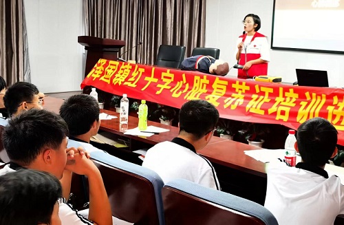 8月25日,温岭市书生中学联合泽国镇红十字会开展自救互救及应急救护知识与技能培训进学校活动。