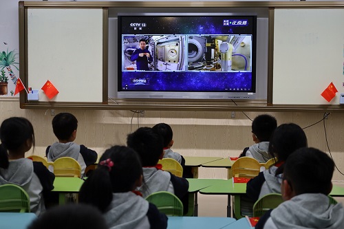 诸暨市海亮小学:组织学生观看天宫课堂第三课(图)