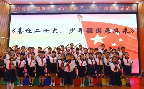三年级段的全体学子参加了“童心向党颂祖国,童声喜迎二十大”为主题的诗歌朗诵活动。