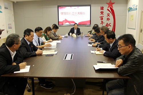 10月23日晚上,义乌外国语学校党员活动室灯火通明,学校党政联席会议正在热烈举行。党支部委员、校长室成员、部处主任13人认真学习习近平总书记代表十九届中央委员会向大会所作的《高举中国特色社会主义伟大旗帜为全面建设社会主义现代化国家而团结奋斗》的工作报告,热议报告精神。