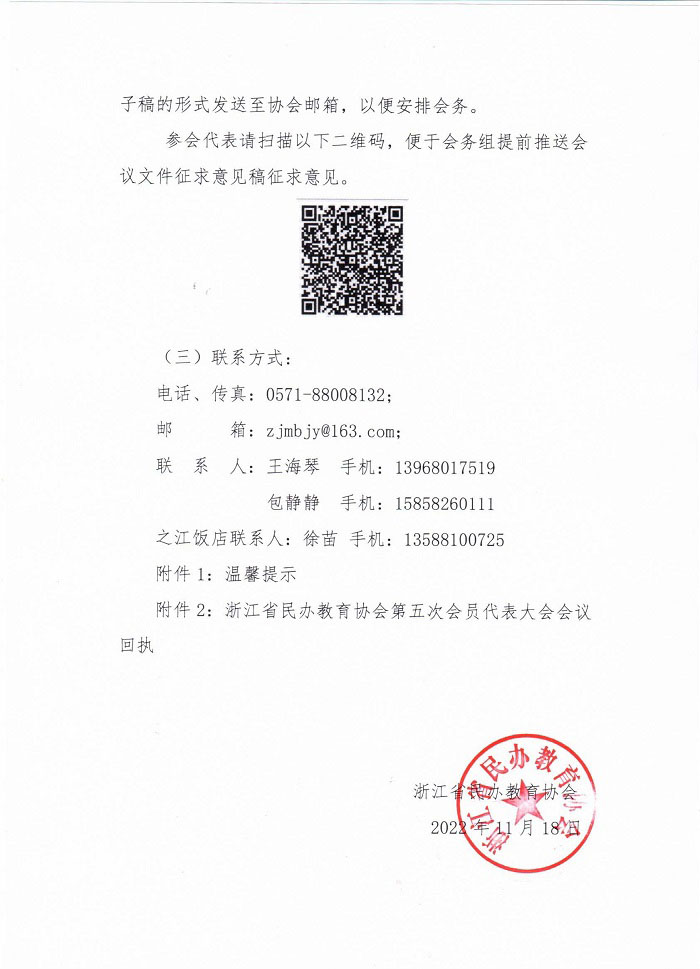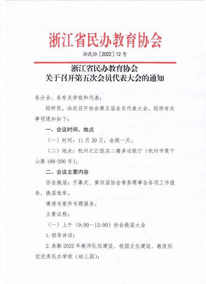 浙江省民办教育协会关于召开第五次会员代表大会的通知