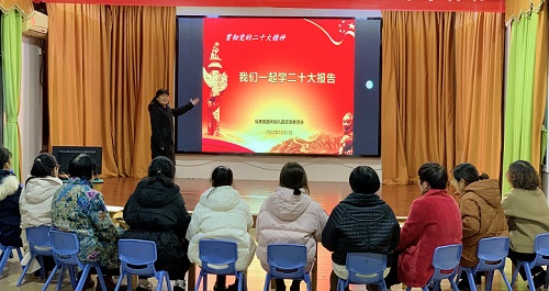 为深入学习贯彻党的二十大会议精神,进一步激发党员的思想激情和奋斗追求,坚定理想信念,增强历史责任感和使命感,以更加饱满的热情发挥党员教师的先锋模范作用。2022年12月1日晚上,中共仙居县蓝天幼儿园党支部书记王雪娟带领全体党员教师深入学习宣传贯彻党的二十大报告精神。