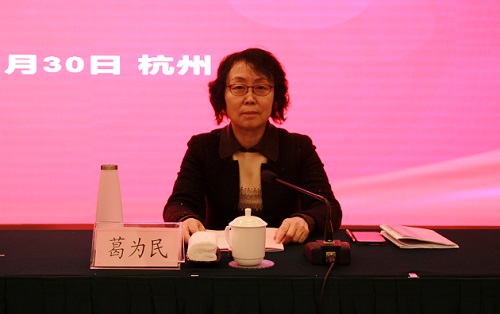 新当选的协会会长葛为民发表了讲话。她在讲话中感谢与会代表和理事们的信任,并表示同新一届理事会成员共同 深入学习贯彻党的二十大精神,以新的面貌,站在新的历史起点,适应新形势新要求,积极作为,全力推动我省民办教育规范、高质量、可持续发展。她强调,协会必须进一步加强自身建设,按照现代社会组织的要求,加强党的领导,完善各项工作制度机制,依法办会,民主办会,廉洁办会,把协会建设成优秀的社会组织,在民办教育高质量发展的新阶段,在浙江“两个先行”的历史进程中,做出新的更大的贡献。