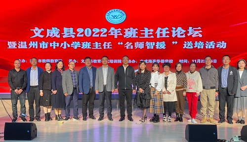 为贯彻落实立德树人根本任务,提升班主任的专业水平与班集体建设能力,培养具有创新精神和综合素养的班主任队伍,实现优质教育资源共享,文成县2022年班主任论坛暨温州市中小学班主任“名师智援”送培活动11月23日至24日在文成县海亮华侨学校举行。