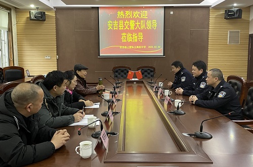 为进一步加强校园安全管理工作,确保师生出行安全,2月9号上午,安吉县交警大队领导一行来校,就我校师生交通安全工作现场指导,并与我校相关领导和管理人员深入座谈研究。校长汤有祥、常务副校长汤学慧、德育副校长于卫芳、政教处主任蔡陈林等部门负责人出席座谈会。