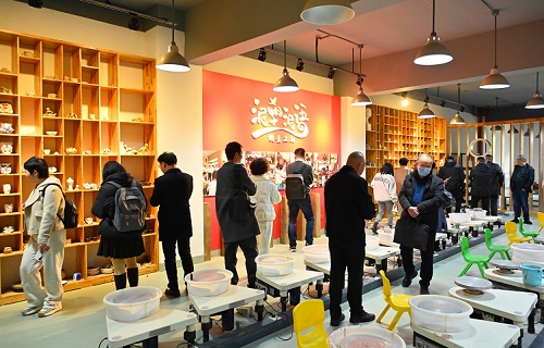 在徐校长的陪同下,各位来访嘉宾首先参观了学校的开放阅览室、陶艺馆、三园(毕业生种植园、百草园、百果园)、学生餐厅、四海乒乓球馆等。在陶艺馆里,徐校长向大家介绍“荣光的每个孩子至少要有两件自己的陶艺作品——一件送给妈妈,一件留给学校。”嘉宾们看到学生“独一无二”的作品兴趣盎然,对学校的做法也是连连称赞。最后在徐校长的热情建议下,不少客人选了自己喜欢的作品留作纪念。
