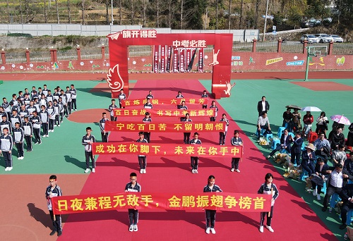 伴随着激越昂扬的国歌,全体师生庄严肃立,鲜艳的五星红旗迎着正午的太阳缓缓升起。在这一百天里,初三学子们将以红旗为指引,笃志前行,迎接属于自己的辉煌。