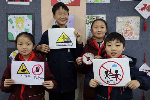 为增强同学们的安全防范意识,提高同学们的安全防范能力,落实校园安全工作,3月24日,诸暨市海亮小学四年级的师生将校园安全牢记于心,共同开展了主题为“安全标识设计”的美术课堂。