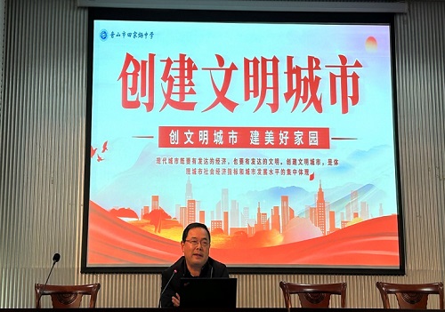 沈学文校长就“做文明师生,创文明校园”发出倡议:我们更有责任、有义务为创文明校园 “加分”。做文明师生,创文明校园,为共建美好精神家园贡献力量。