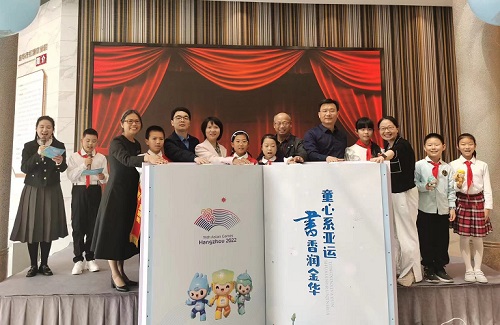 4月15日,我校陈炫霖同学参与了“我爱阅读”读书节启动仪式,给广大市民朋友们展示了《喜迎亚运,八婺文化我推荐》的朗诵,之后荣宝们还参与了“‘悦’读小书市,共享亚运乐” 广场体验活动。