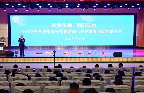 随着天气逐渐炎热,“防溺水”再次成为重点关注的话题。为了敲响学生和家长心中的防溺水警钟,增强安全防范意识,避免溺水事故的发生,2023年4月24日,金华市荣光学校开展了“珍爱生命,预防溺水”防溺水专题教育活动启动仪式。