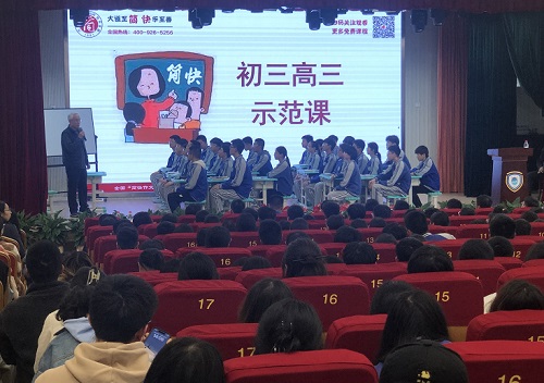 26下午翟暾教授为350名初三、高三学生及语文老师上“简快作文”示范课,并让学生围绕“成为一个怎样的人”,自选角度,自拟题目,写一篇不少于800字的作文。写完后学生互评,老师点评。