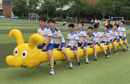 本次趣味运动会秉承“运动、健康、快乐”的活动理念,“竞技”与“娱乐”,“精英展现”与“全员参与”同在的活动原则,通过各年龄段学生的特点进行多种形式的游戏比赛,展现个人风采的同时,也激发着学生激情拼搏、团结协作的团队精神。活动共设置迎面接力赛、手持竹竿绕桩跑、毛毛虫赛跑、立定跳远比赛、垒球掷远比赛、篮球运球接力赛、篮球投进20球接力赛等集体项目,另外,为了激发学生们的挑战意识,突破自我,特设置100米飞人大赛、立定跳远弹跳王大赛、垒球掷远投掷王大赛、跳高达人弹跳王大赛等个人挑战项目,每名学生都可以去参与挑战。