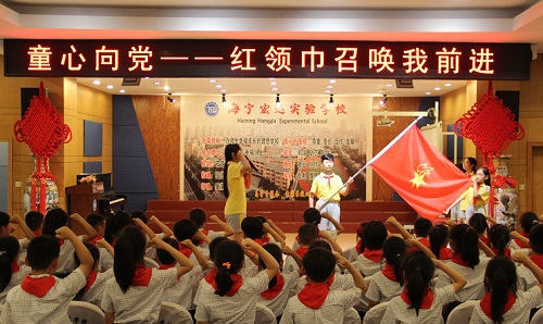 为深入贯彻落实习近平总书记关于少年儿童和少先队工作的重要指示精神,5月31日,海宁宏达实验学校在报告厅隆重举行了“童心向党——红领巾召唤我前进”一年级首批新队员入队仪式。