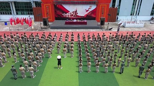 8月19日上午,义乌外国语学校360名初高中新生为期9天的国防教育在横店国防科技教育园顺利开营,一场成长与蜕变悄然开始。