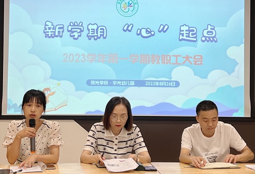一半暮夏,一半浅秋,道别盛夏的酷热,迎来了新的开端。为更好地统筹和安排新学期的各项准备工作,精心谋划开局新篇,2023年8月26日下午,金华市婺城区宇光幼儿园召开了新学期教职工大会,全体教职工齐聚一堂,同绘蓝图,共话发展。