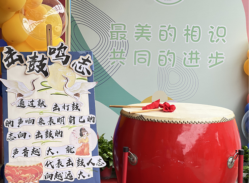 击鼓鸣志:在孩子们的启蒙阶段,老师和家长都希望孩子们能够健康平安,快乐成长。孩子们在敲打中积累成长的力量,在响亮地锣鼓声里畅快欢笑,传递健康平安的美好寓意。