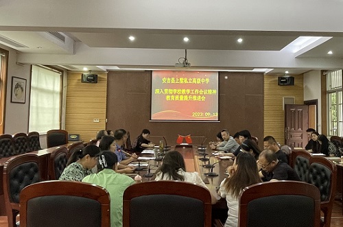 为贯彻落实上级重要文件精神,更好开展学校教学教研工作,持续推进课堂教学改革,稳步提升教育教学质量,2023年9月11日-9月14日,安吉上墅私高分别召开了2023学年第一学期教育教学质量提升工作会议,教研组备课组会议、体育质量提升推进会和新生班主任工作会。