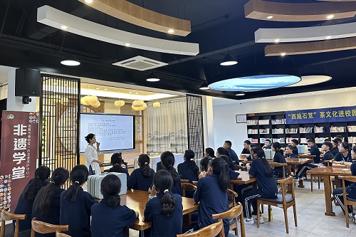 本场活动特别邀请了高级茶艺师郭中秀老师。在诸暨市天马实验学校的图书馆里,郭老师首先为同学们介绍了“西施石笕”文化历史和“西施石笕”茶知识,结合丰富有趣的茶文化故事,带领同学们走进茶的世界,感受越茶文化的韵味。接着,郭老师带领学生们学习了解了“西施石笕”的品质特点,让学生对西施石笕茶有了初步的认识。最后,伴随着悠扬的音乐,郭老师带领西藏班的学生取茶、冲泡、摇香、分茶……一道道程序如行云流水般流畅自如,教室里弥漫着幽幽茶香,在教授学生沏泡西施石笕茶的过程中,讲解茶礼仪,感受茶文化,品鉴西施石笕茶的独特味道。