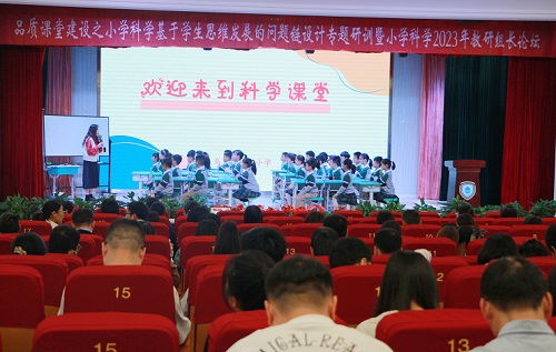10月27日,品质课堂之小学科学基于学生思维发展的问题链设计专题研训暨义乌市小学科学教研组长论坛活动在义乌外国语学校举行,义乌市小学科学老师近300人齐聚义外学生剧院,共享智慧成果,共研品质课堂。