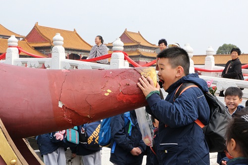 过去,书本是孩子的世界;现在,世界是孩子的书本。一年级变身格格、阿哥学习礼仪,制作中国结;二年级走入明清皇家建筑群,邂逅非遗绒花,体验了绿幕抠图技术;三年级一步入画,探访汴京,感受了活字印刷术的魅力;四年级化身森林卫士、禁毒小勇士探索动物世界,学习禁毒知识;五年级梦回圆明,感悟中华文明,学习军人作风;六年级重走长征路,体悟长征精神。