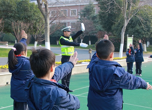 (通讯员 方丽 钟乐平)“左转弯信号,预备,一、二、三……直行信号,预备,一、二、三……”1月10日下午,义乌外国语学校塑胶操场上,小学部四年级5班的同学,正在北苑派出所交警的现场指导下,有模有样地学做交通手势指挥操,亲身体验交警指挥交通的苦与乐。