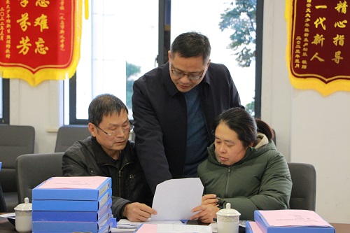 听取了杨校长的自查汇报后,年检组全体成员审读了相关文本、查阅了档案、察看了相关台账,重点核实了教师队伍建设相关数据,索要了相关证明材料。
