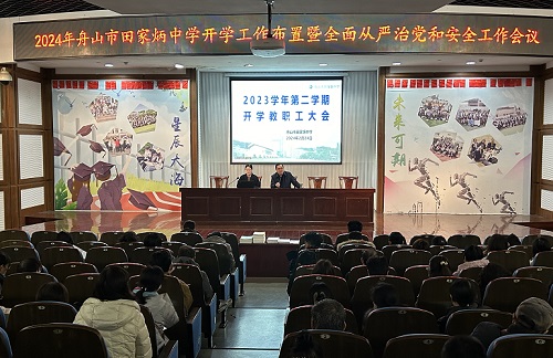 (通讯员 李钟萍)2月 24日上午,舟山市田家炳中学在科技楼报告厅召开了新学期全体教职工大会。学校领导班子全体成员、全体教职工参加会议。会议由校长沈学文主持。