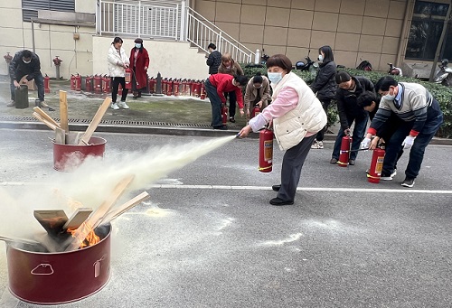 最后徐毅主任对灭火器的正确使用方法进行了详细介绍和演示,并组织生活老师现场进行操作。参与演练的生活老师按照操作规范,将火势迅速成功扑灭,顺利掌握了灭火器的使用方法,达到了消防应急技能培训预期效果。