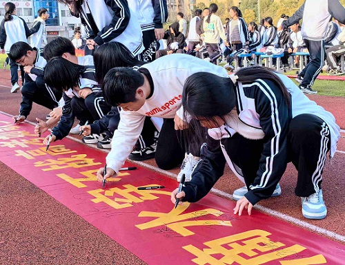 本次活动不仅有传统的喊口号、表决心环节,更是安排了多种轻松愉悦的减压游戏,还有小山样的零食。校领导班子成员、班主任、科任教师和全程陪伴参与,师生互动,嗨爆全场。在热烈的呐喊和欢呼声中,同学们在尽情释放多巴胺的同时,更是极大的缓解了内心焦虑。