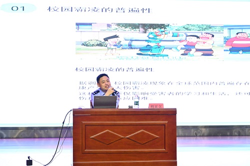 程警官通过真实案例以及心理学,犯罪学等角度向学生们阐述了校园霸凌的概念、危害、发生的原因以及防范措施。这次演讲使学生们明晰应对措施。