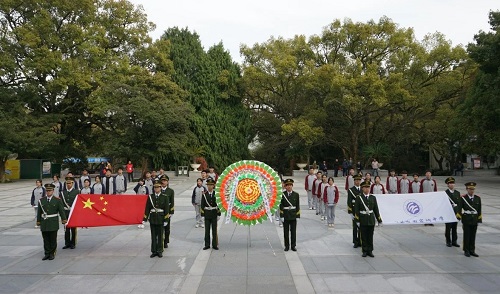 4月1日下午,在校团委老师的带领下,学生代表与国旗班同学,怀着崇高的敬意,步行前往海山公园烈士陵园进行扫墓献花活动。