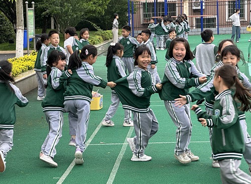 下课铃一响,学生纷纷有序走出教室。走廊、五环广场、樱花林前、教室前空地,呼啦圈、丢沙包、踢毽子、跳皮筋、跳绳、羽毛球、老鹰抓小鸡等活动热闹非凡;笑声、呼唤声、惊叫声、叹息声,不绝入耳。孩子们在这片充满活力的空间里肆意挥洒汗水,展现风采,释放能量!在课间活动中培养团队精神、锻炼身体素质,感受活动氛围,尽情享受活动带来的快乐。
