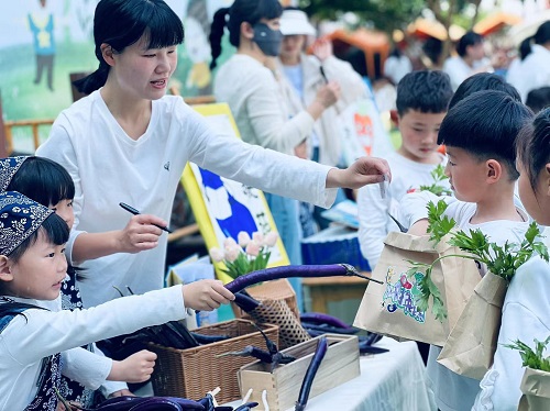 在孩子们满满的期待中,当郑园长宣布“换蔬活动”开始啦!孩子们立刻沸腾了,满目的鲜绿、橙红、淡紫……散发出清新的香气。蔬菜清香遇上书韵飘香,幼儿园到处洋溢着欢声笑语。