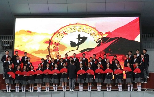 《我的中国心》、《一二三四歌》、《没有共产党就没有新中国》、《少年中国说》等一首首振奋精神、催人奋进的红色经典歌曲在师生们的精心策划、巧妙编排和精彩演绎下,达到了形式和内容的和谐,回味无穷。台下阵阵掌声献给精彩演唱的同学们。