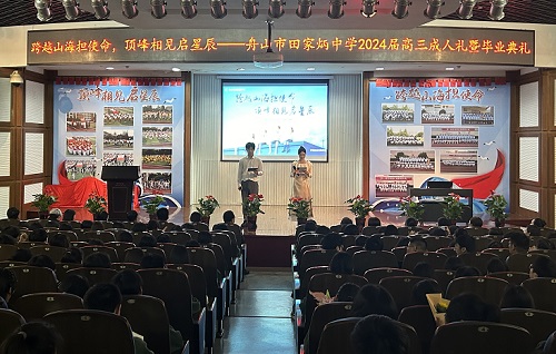(通讯员 李钟萍)舟山市田家炳中学于2023年5月4日下午为全体高三学子举行了以“跨越山海担使命 顶峰相见启星辰”为主题的成人仪式暨毕业典礼。高三全体师生、家长代表共同参加了这场双礼合成的青春盛会,见证了高三学子跨入成人行列的神圣时刻。