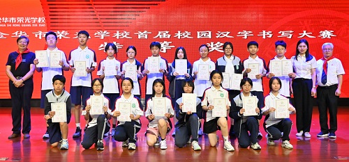 (通讯员 申盼路 王雨晨)在充满欢笑与期待的“六一”儿童节即将到来之际,浙中书法院创院院长杨守春,金华市文联原副主席、金华市中小学教师书法素养培训工程协调组组长王亦平,金华市婺城区书法家协会原主席、浙中书法院副院长邹其寿,中国硬笔书法协会教育委员会委员、金华市书协教育委员会秘书长邱晓强,浙中书法院秘书长兼办公室主任凌稼等多位书法专家莅临金华市荣光学校,参加庆祝“六一”暨首届校园汉字书写大赛颁奖典礼。