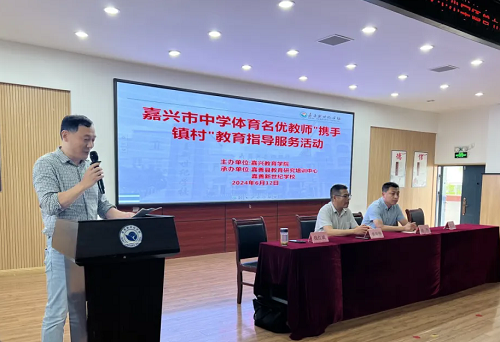 (通讯员 吴荣山)应县市两级名师工作室安排,由嘉兴教育学院主办、嘉善县教育研究培训中心和嘉善新世纪学校承办的嘉兴市中学体育名优教师“携手镇村”教育指导服务活动于6月12日在嘉善县新世纪学校顺利举行。活动以“素养导向下理解性课堂构建与教学方式改革”为主题,一起研讨“大单元统筹视域下的学教评一体化教学”工作。嘉兴教育学院赵明教研员、嘉善县研训中心钱红斌老师、县市中学体育名优教师代表五十余人参与培训。活动由嘉善县体育教研员钱红斌老师主持。