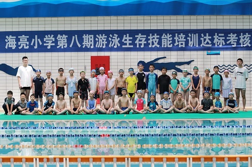 拥有这样的“硬件”,开设游泳课变得顺理成章。海亮小学副校长陈光平介绍说:“自2015年开始学校就开设了游泳课程,学生从一二年级开始就慢慢跟着专业游泳教练熟悉水性、体验游泳,到四年级的时候要求人人都能掌握蛙泳技能并通过‘一次性游过20米’的考核。”