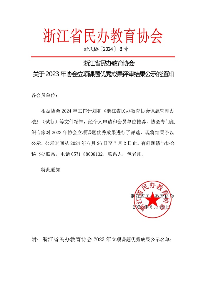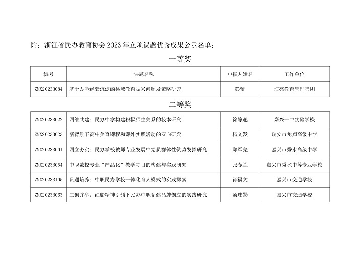 浙江省民办教育协会关于2023年立项课题优秀成果评审结果公示通知(图)