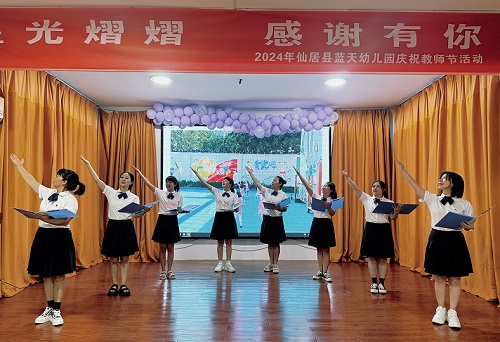 (通讯员 徐仙聪)为致敬全体教职工的辛勤付出与默默耕耘,彰显教书育人、爱岗敬业的高尚师德,弘扬教育家精神,强化教师文明从教、廉洁从教、规范从教的职业素养,9月9日晚上,仙居县蓝天幼儿园全体教职工们欢聚一堂,开展了以“星光熠熠·感谢有你”为主题的教师节庆祝活动。