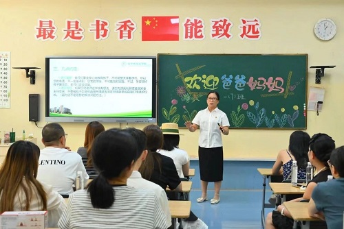 在各班教室,一年级班主任及任课老师向家长们介绍了班级情况以及孩子日常学习生活等内容,提出积极参与孩子的教育过程、与学校保持密切沟通、共同关注孩子的成长与发展等建议,还分享了有效陪伴孩子、促进孩子习惯养成、消除家长担心和疑虑等许多实用的方法和经验,为家长们提供了宝贵的参考,也进一步拉近了老师和家长的距离。