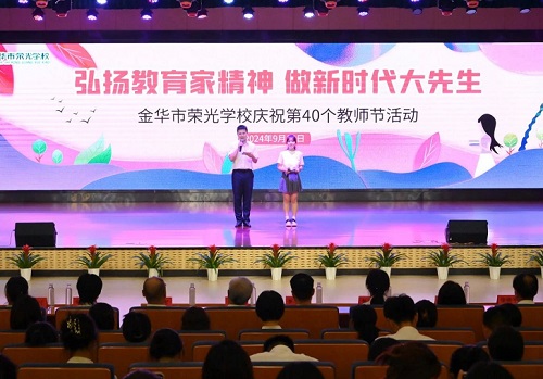 (通讯员 童真莹 郑湛然)又是一年桃李绿,依旧十里桂花香。9月10日下午,金华市荣光学校在学校千人报告厅隆重举行第40个教师节庆祝活动,展现立德树人新风貌,共兴尊师重教新风尚。集团董事长李宇光先生和学校校级领导、全体教职工共同出席活动。