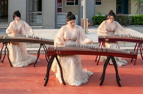 第一个节目是古筝演奏。这个节目由高二音乐生表演。三位同学坐成“品”字形,一起合奏传统曲目《水调歌头》。三位同学神情专注,指法娴熟,演绎着对生活的爱,对亲友的爱。行云流水般的指法,婉转柔美的旋律,深深地打动了现场同学。同学们报以热烈的掌声。